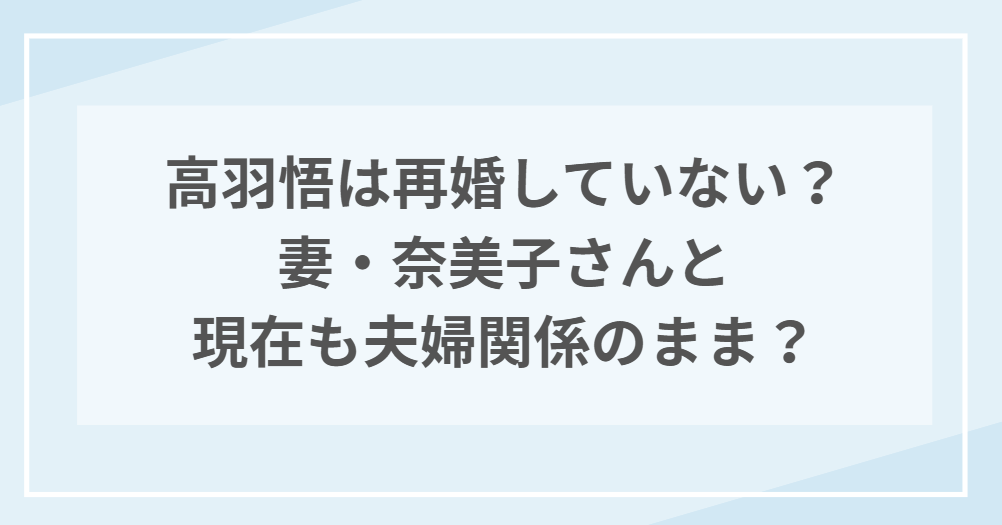 高羽悟は再婚していない?妻・奈美子さんと現在も夫婦関係のまま?